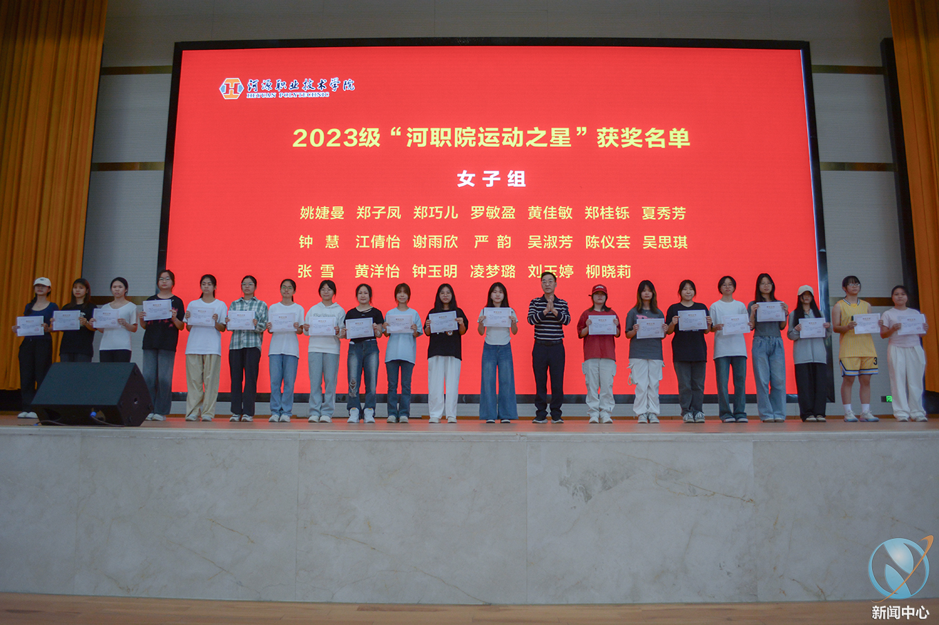 紧接着,运动员代表、裁判员代表先后上台进行宣誓,他们承诺将严格遵守比赛规则,尊重对手,尊重裁判,展现良好的体育道德风尚。随后学校对过去一个学期中积极参与“百万公里·健康长跑”方案涌现出的“河职院运动之星”进行了表彰。姚家芳、王小宁副校长分别为2023级运动之星男子组、女子组颁奖;钟茂开副书记为2024级运动之星颁奖。