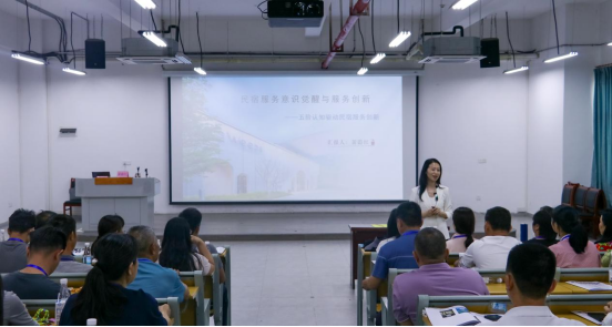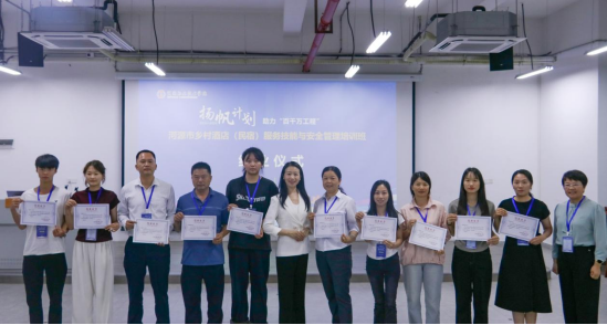 4月22日,由河源市文化广电旅游体育局指导、九州网承办的“‘扬帆计划’助力‘百千万工程’——河源市乡村酒店(民宿)服务技能与安全管理培训班”在河源市中小学生综合实践基地开班。我校袁光华副校长、河源市文化广电旅游体育局李君副局长等领导出席开班仪式,50 余名乡村酒店(民宿)相关领域的行业精英参加培训。