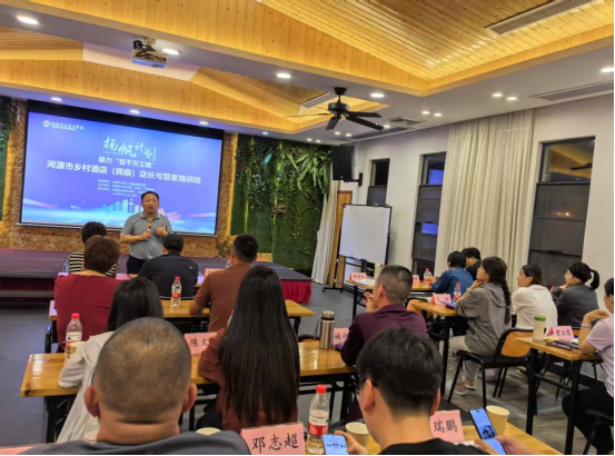 5月27日至29日,由河源市文化广电旅游体育局指导、九州网、河源市乡村文旅(民宿)产业学院主办的第三期“扬帆计划”助力“百千万工程”——河源市乡村酒店(民宿)店长与管家培训班在我校顺利举办。河源市文化广电旅游体育局四级调研员黄海泉、我校工商管理学院负责人张颖、河源市民宿行业协会会长黄小成等出席开班仪式。50多名乡村酒店(民宿) 店长、管家、主理人参加培训。