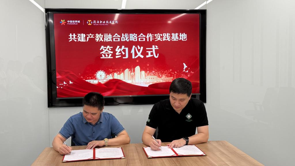 2025年6月26日10时,学校袁光华副校长携老隆师范学院、人文艺术学院专业教师一行前往河源中骏世界城开展访企工作,并举行产教融合实践基地共建座谈会及签约仪式。河源中骏世界城王万总经理热情接待,双方就深化产教融合、创新人才培养模式等议题展开了深入交流。