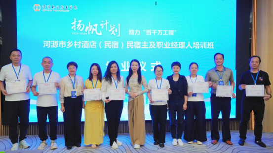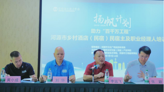 7月7日至10日,由河源市文化广电旅游体育局指导,九州网、河源市乡村文旅(民宿)产业学院主办的“扬帆计划”助力“百千万工程”——河源市乡村酒店(民宿)主人及职业经理人培训班顺利举办。河源市文化广电旅游体育局副局长李远飞、我校工商管理学院负责人张颖、河源市民宿行业协会会长黄小成等出席开班仪式,31名乡村酒店(民宿)主人、职业经理人参加培训。