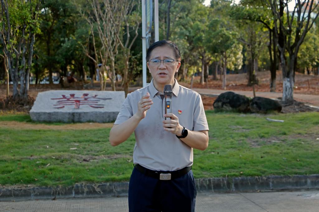 刘校长在致辞中回顾了基地的建设历程。“从一片杂草丛生的荒地,到今天初具规模的实践基地,这里的一草一木都凝聚着全校师生的心血与汗水。”刘校长指出,这片土地不仅是学校推进劳动教育的物质载体,更是传承劳动精神、培育时代新人的重要平台。他强调,劳动教育是培养学生社会责任感、创新精神和实践能力的重要途径,全校师生要以第二阶段建设为契机,继续发扬艰苦奋斗的精神,将基地建设成为集“党建示范、劳动实践、专业教学、景观育人”于一体的综合育人平台,让学生在劳动中成长,在奉献中成才。
