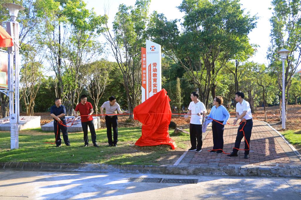 在激动人心的揭幕环节,刘校长与校领导班子成员共同为劳动教育实践基地揭幕。当红色幕布徐徐落下,“劳动教育实践基地”几个大字在阳光下熠熠生辉,标志着学校劳动教育工作开启了新篇章。