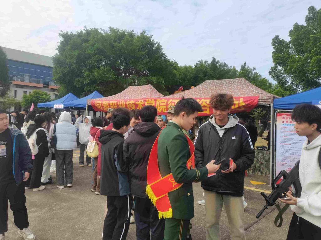 为响应国家号召,激发青年学子报国热情,11月21日,学校武装部在河源市2025年“百万英才汇南粤”暨高校毕业生“就”在金秋,“职”达未来校园招聘活动中开展“携笔从戎 强军有我”征兵宣传活动,刘贻新校长亲临现场指导。