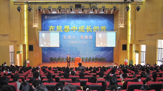 4月10日,世界杰出华人奖获得者、著名的企业家、慈善家,美国加州国际大学博士吴惠权先生莅临我校作了题为“在风暴中成长的我”的报告会。报告会由河源市副市长叶维园主持。