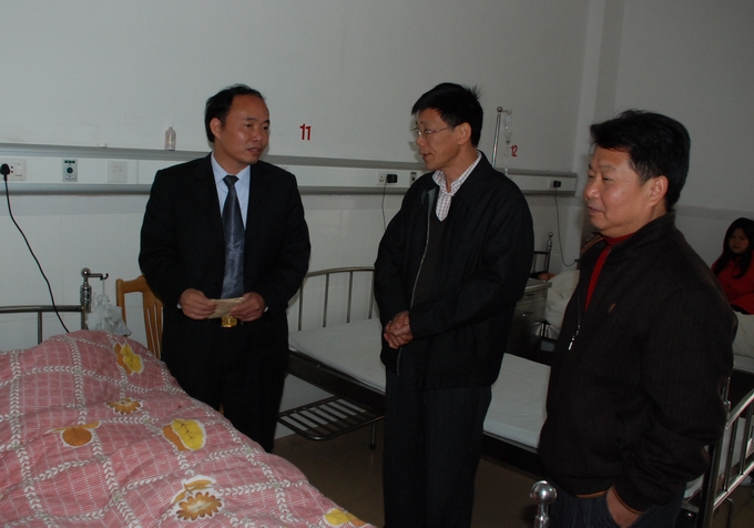 在高书记的带领下,我校领导首先到医院探望了生病住院多时的戴振强老师的家属,并送上慰问金。高书记亲切地询问了戴老师家属的病情,表示一定不要失去治疗的信心。戴老师对我校领导的关心和支持非常感动。