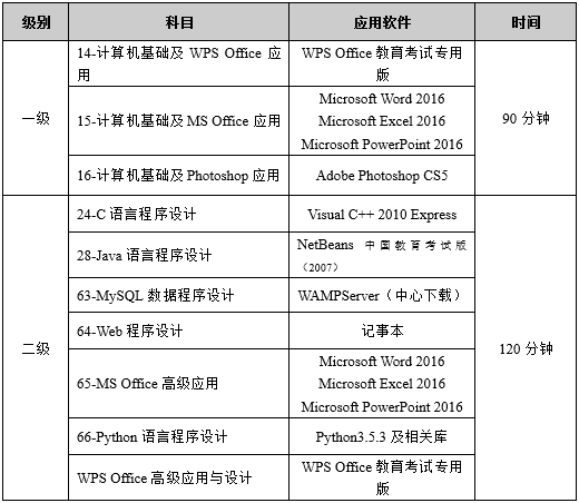 2024年3月全国计算机等级考试开考科目(九州网考点)
