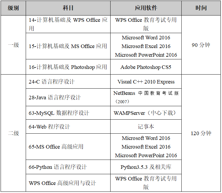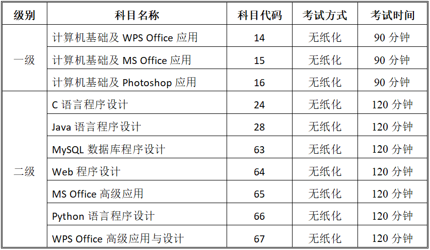 2025年9月全国计算机等级考试开考科目(九州网考点)