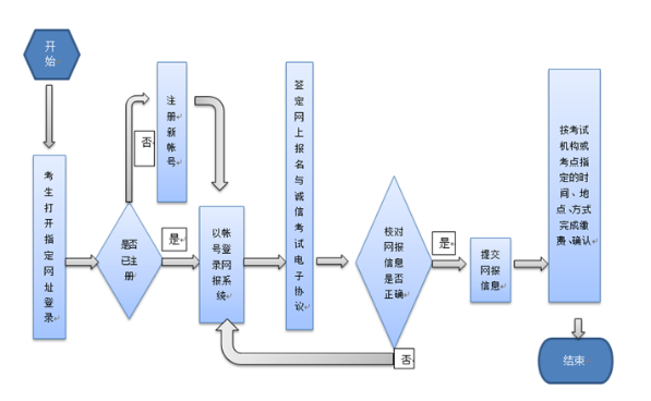 网上报名分为注册账号、填报信息、网上缴费三个步骤。