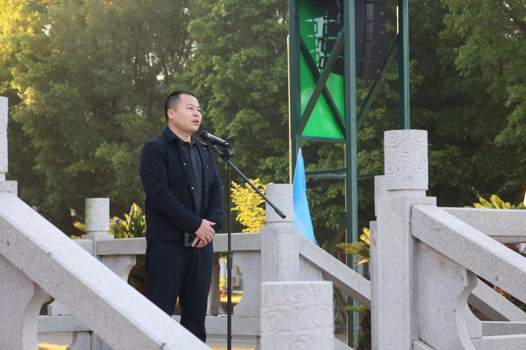 升旗仪式结束,院团委副书记许宗允作为学生代表在国旗下发言,他呼吁同学们从遵守课堂纪律、认真完成作业、专注听讲做起,以实际行动涵养优良学风,珍惜青春时光,不负师长期望,在勤学善思中锤炼本领,让奋斗成为青春最亮丽的底色。