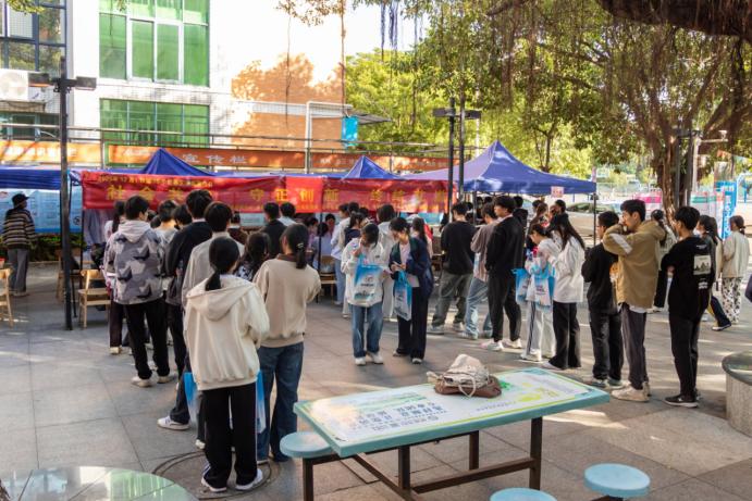 专题讲座的同时,我校联合河源市疾控中心、河源市妇幼保健院、河源市慢性病防治院、河源市健康教育所、河源市计划生育药具管理站、江东新区社会事务局、大学城社区卫生服务中心、河源市逸家公益服务中心等八家单位在校园内设置了集中的宣传咨询点。学校组织由励志团体、青春同伴社、爱心协会、养生保健协会等学生社团组成的共计200余名志愿者参加现场宣传。各单位通过悬挂横幅、摆放展板、发放宣传折页、义诊、提供现场咨询、开展有奖问答等多种形式,向广大师生广泛宣传艾滋病防治知识和国家相关政策。现场气氛活跃,师生们纷纷驻足观看、咨询,积极参与互动,有效提升了对于艾滋病防控知识的知晓率和自我防护意识。